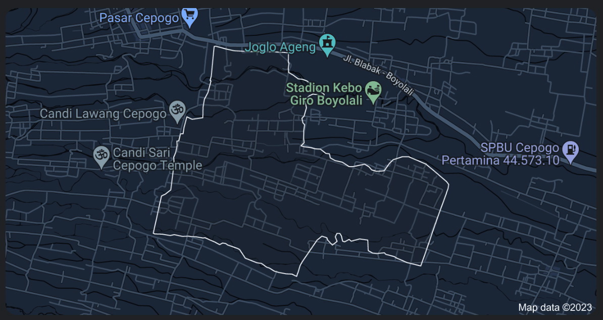 - Sebelah Utara: Desa Mliwis, Cepogo, Boyolali